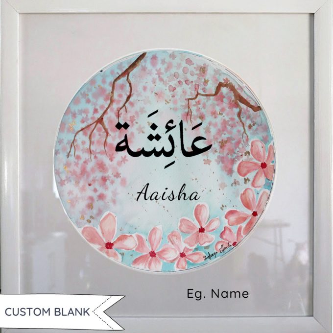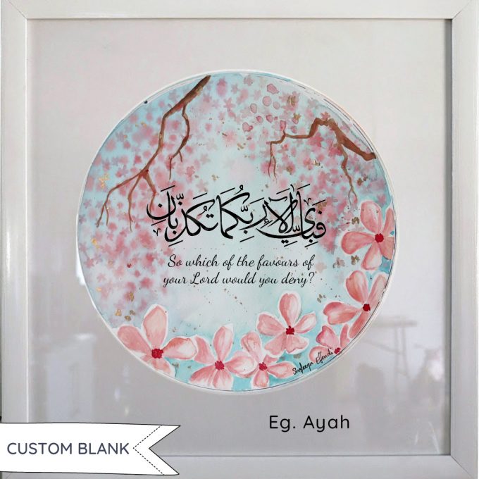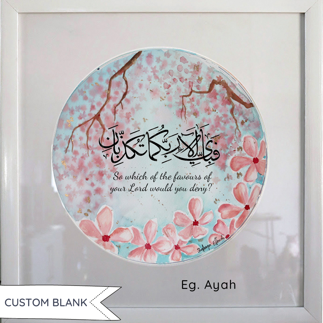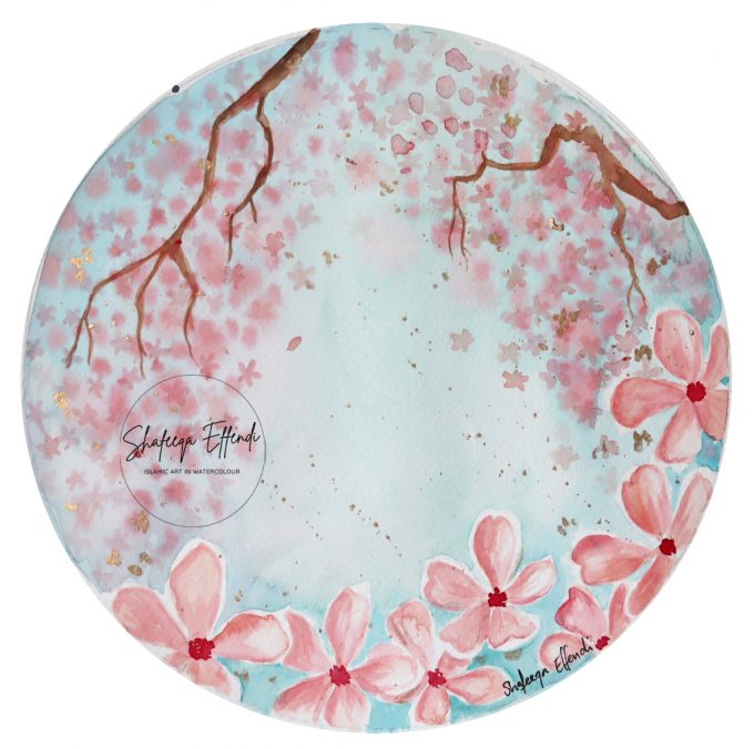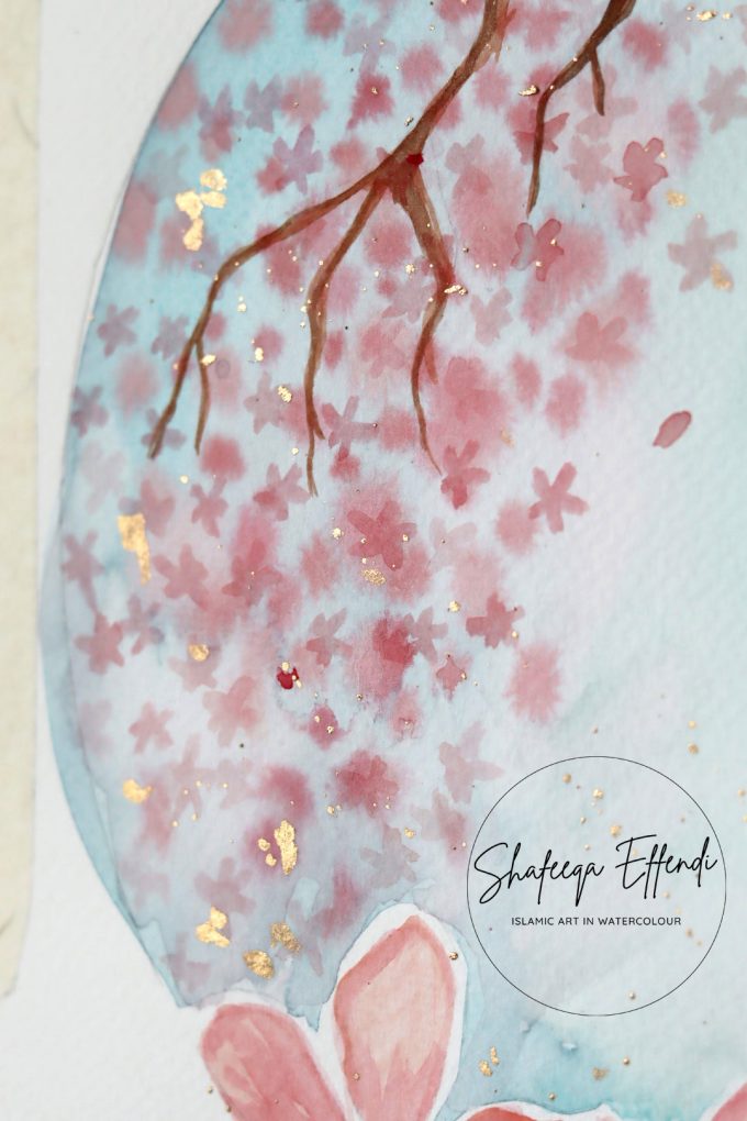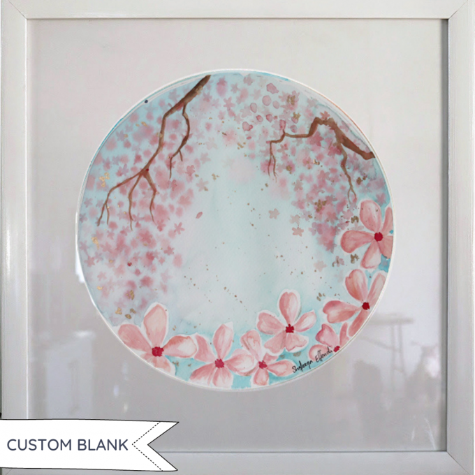 A Custom Blank painting with cherry blossoms in soft shades with touches of gold, ready to personalize.
