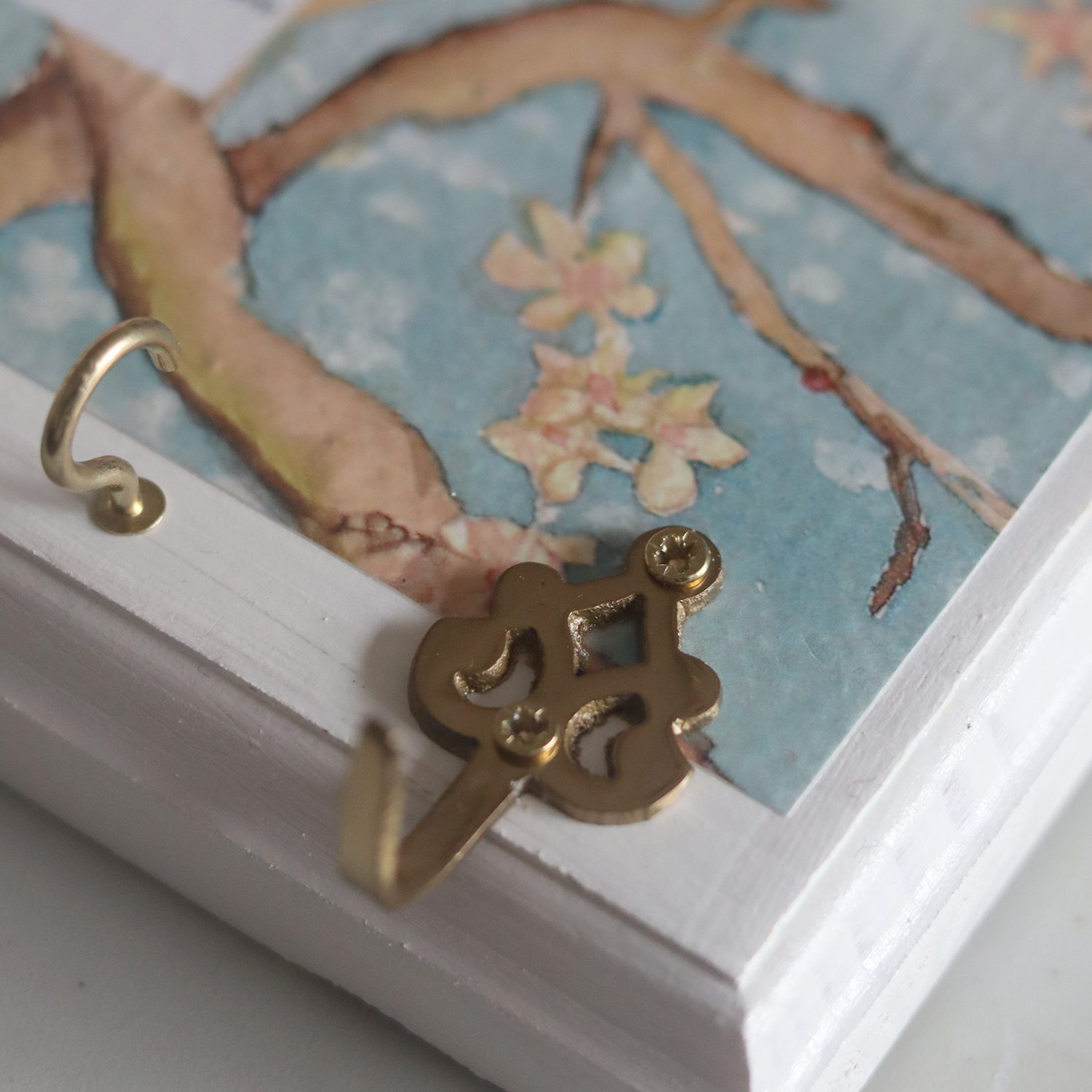 Keyholder: White with Duck Egg and Cherry Blossoms
